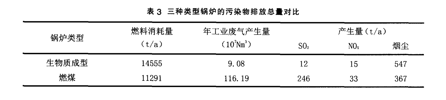從污染物的產(chǎn)生總量上分析 。生物質(zhì)成型燃料鍋爐除煙塵產(chǎn)生量略高 .約為燃煤鍋爐的 1.49 倍外 ,二氧化硫 、氮氧化物、煙塵產(chǎn)生量分別相 當(dāng)于燃煤鍋爐的0.05 、0.45 倍。綜上所述 .生物質(zhì)成型燃料鍋爐污染物產(chǎn)生量總體較低 ,得益于生物質(zhì)燃料的硫含量低 ,二氧化硫的產(chǎn)生量顯著減少。