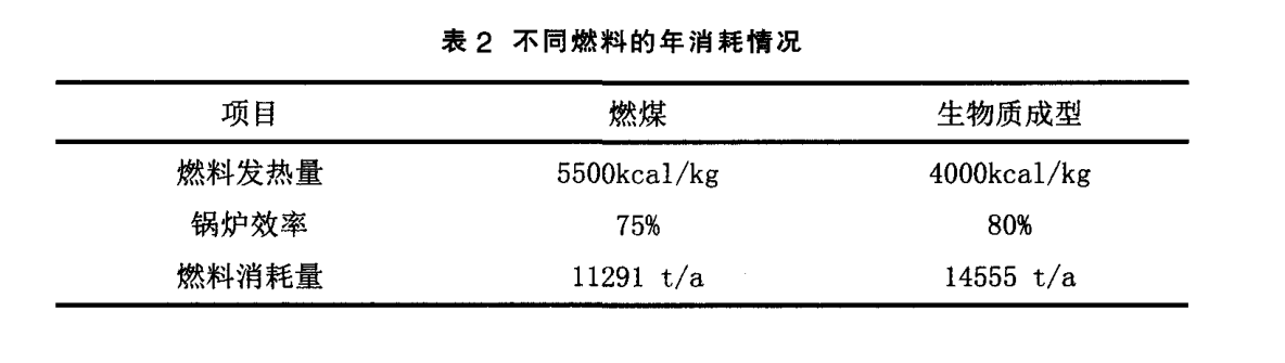 鍋爐排放 的大氣污染物主要包含煙塵、氮氧化物 、二氧化硫等。以10t/h ,額定蒸汽壓力 1.25M Pa的鍋爐 .日運(yùn)行 24h 。年運(yùn)行 300 天的工況為例。燃煤熱值參考《環(huán)境保護(hù)實(shí)用數(shù)據(jù)手冊(cè)》動(dòng)力煤取值5500kcal/kg . 木 質(zhì) 生 物 質(zhì) 成 型 燃 料 熱 值 按4000kcal/kg 計(jì)。鍋爐熱效率分別取值 75%、80%。如表 2 .生物質(zhì)鍋爐的熱效 率雖然略高 .但 由于燃料的熱值較低 .綜合起來燃料年消耗量約為燃煤 的1.28 倍。